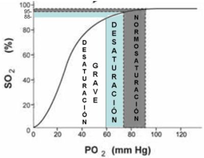 presión de oxígeno en los pulmones, la saturación de la Hb apenas disminuye un 10%